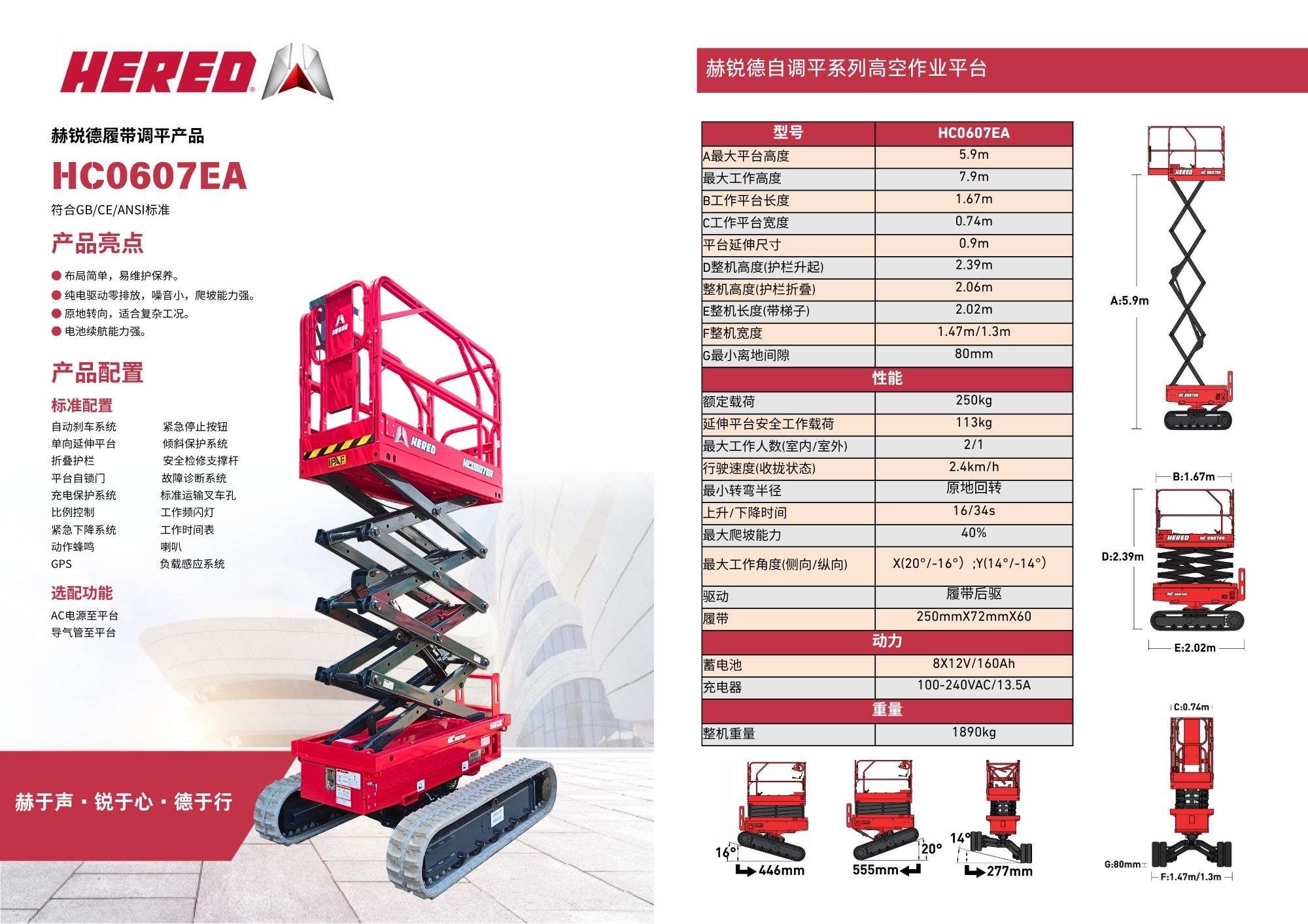 ● 纯电驱动零排放,噪音小,爬坡能力强。