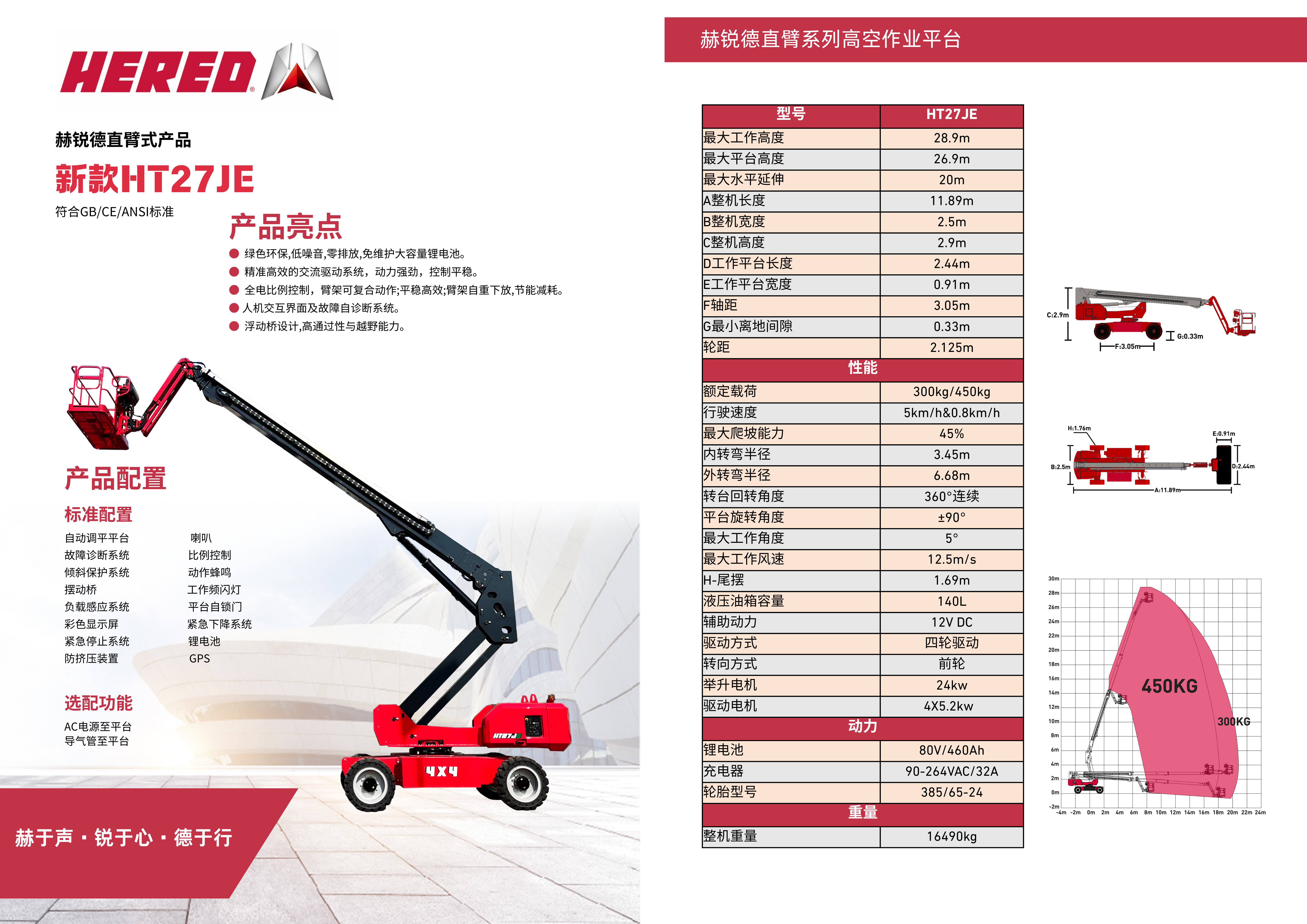 绿色环保,低噪音,零排放,免维护大容量锂电池。